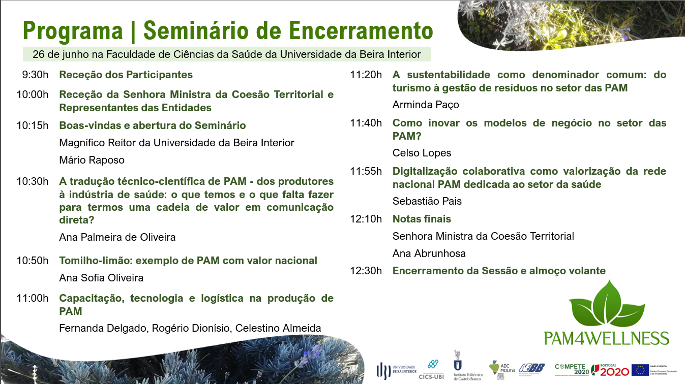 "Estas ações de sensibilização, informação e demonstração, inserem-se na Atividade 2 do projeto e pretendem promover a disseminação e difusão de novos conhecimentos e tecnologias gerados no âmbito da I&D, para o tecido empresarial. Envolvem projetos-piloto demonstradores, ações setoriais de experimentação e ações de difusão de informação científica e tecnológica. No caso de ações 1 e 3, com necessidade de limitação de número de vagas, será dada preferência a participantes de empresas ligadas ao setor das PAM e só depois ao público em geral. A participação nestas ações é gratuita, mas de inscrição obrigatória. Veja os temas e a respetiva calendarização."